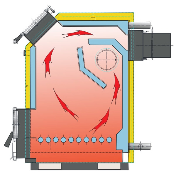 Telo kotla je od čeličnog lima zavarene konstrukcije. Ložište se sastoji od bunkera za gorivo , komore za razmenu toplote i vodeno hlađene rešetke. Dobra konfiguracija i kvalitetna izolacija doprinose visokom stepenu iskorišćenja i uštedi goriva.
