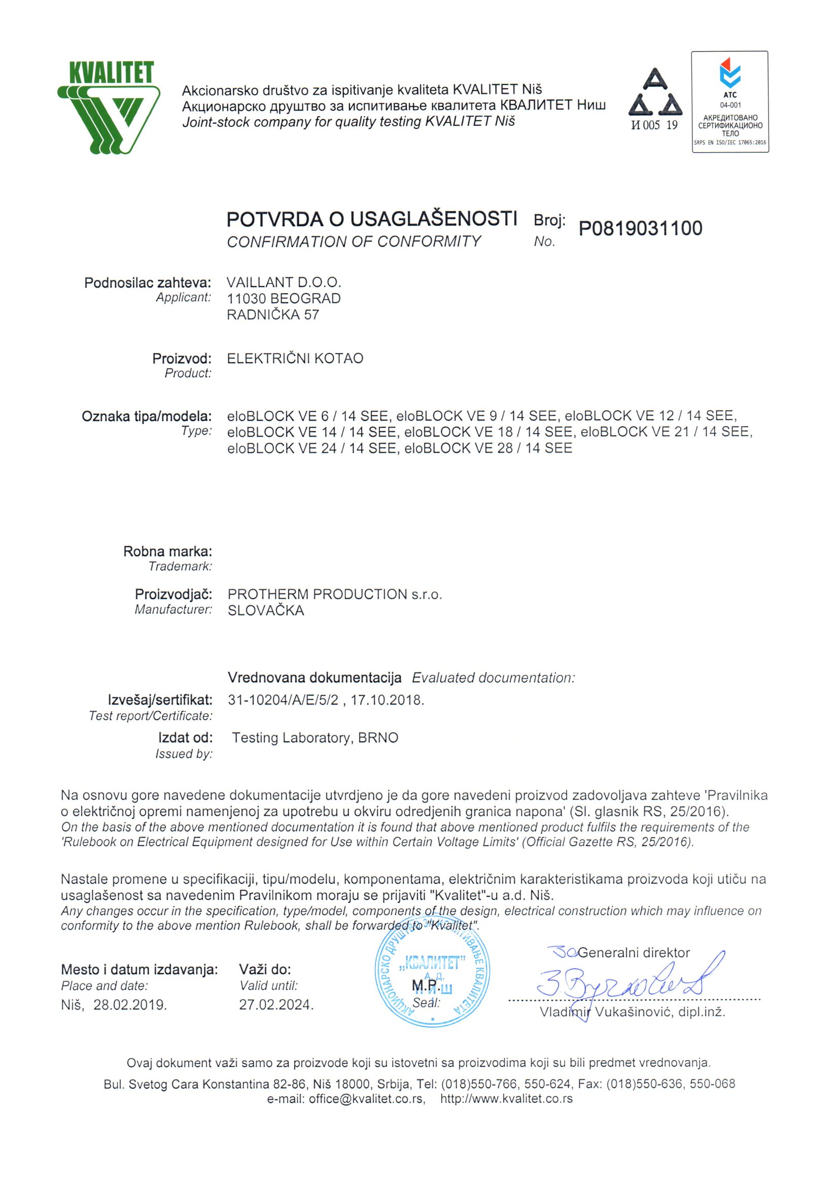 Nova generacija Vaillantovih električnih uređaja za centralno grejanje eloBLOCK, pruža savremen način grejanja stanova i porodičnih kuća. Sekvencijalno aktiviranje grejnih spirala sa modulišućim radom omogućava manju potrošnju električne energije u odnosu na obične električne kotlove, manje opterećenje eletričnih instalacija i dugotrajnost uređaja. Rad ovih uređaja je u potpunosti automatizovan i gotovo nečujan.