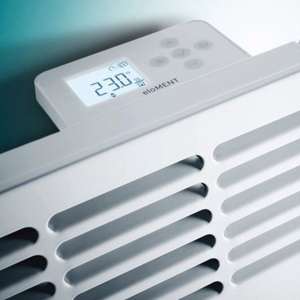 Električne sobne grejalice eloMENT VER rade na principu prirodnog strujanja vazduha (konvekcije). Mogu se koristiti za zagrevanje svih stambenih i poslovih prostorija. Grejalice poseduju zaštitu protiv prskajuće vode (IPX 4) i zaštitno su izolovane, te se mogu montirati i u kupatilu. Tim vrhunskih dizajnera je osmislio izgled koji oplemenjuje Vaš prostor. Pomoću integisanog digitalnog termostata sa pozadninskim osvetljenjem plave boje moguća je regulacija temperature u rasponu od 5 do 30 C, u zadatim vremenskim intervalima. Dodatno, korisniku je na raspolaganju zaštita od smrzavanja, zaštita od otvorenog prozora, kao i unapred definisani radni režimi „noć“ ili dan“.